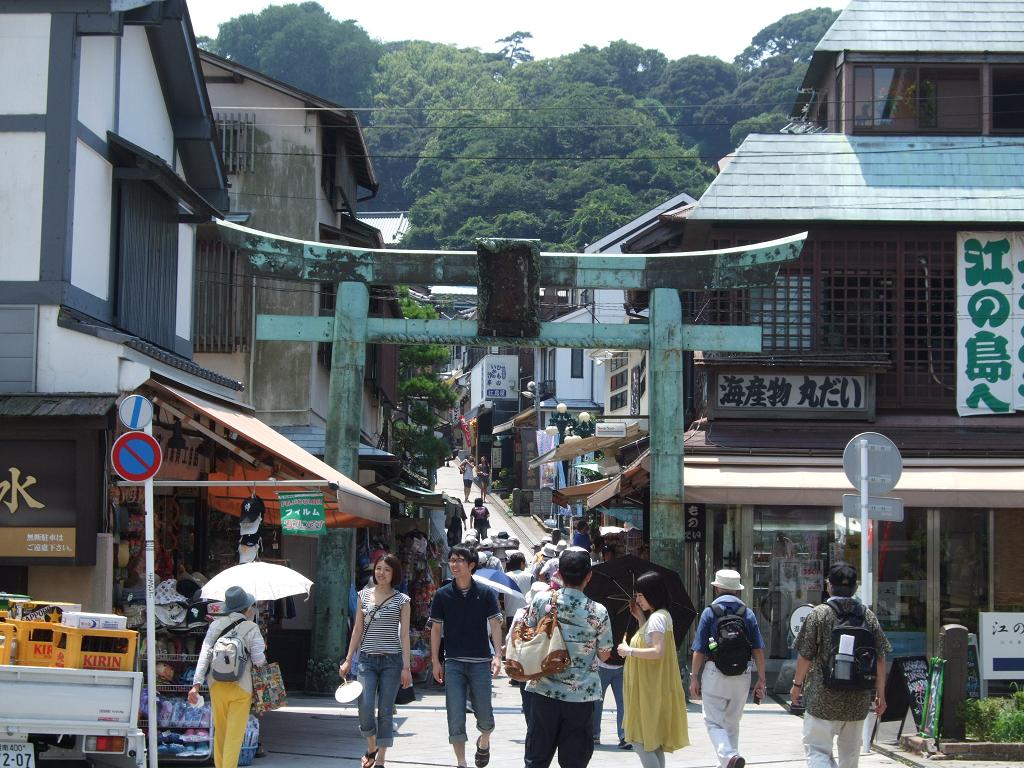 江ノ島駅から江ノ島への道沿いは、海用品やら飲食店やら旅館やらいろいろと。