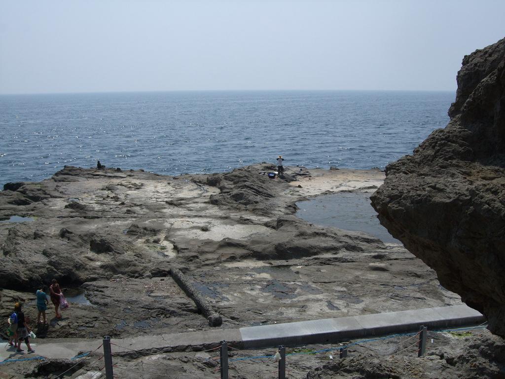 ちょうど島の裏側に位置するここですが、見ての通り平らな岩場が広がってるので、