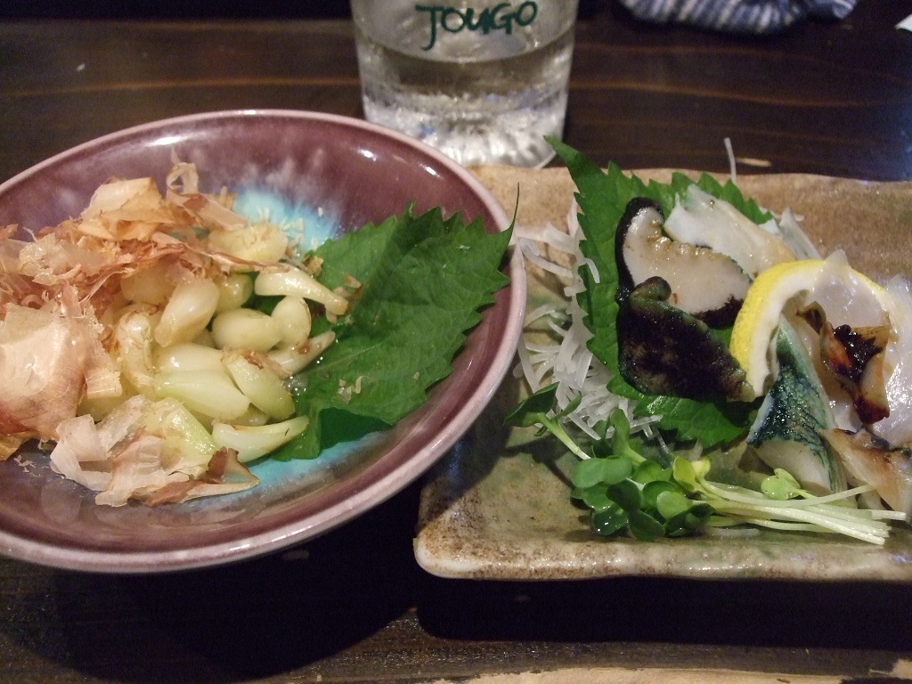 島らっきょうと南国的な貝(笑)と黒糖焼酎