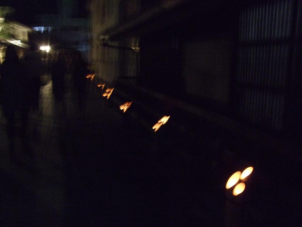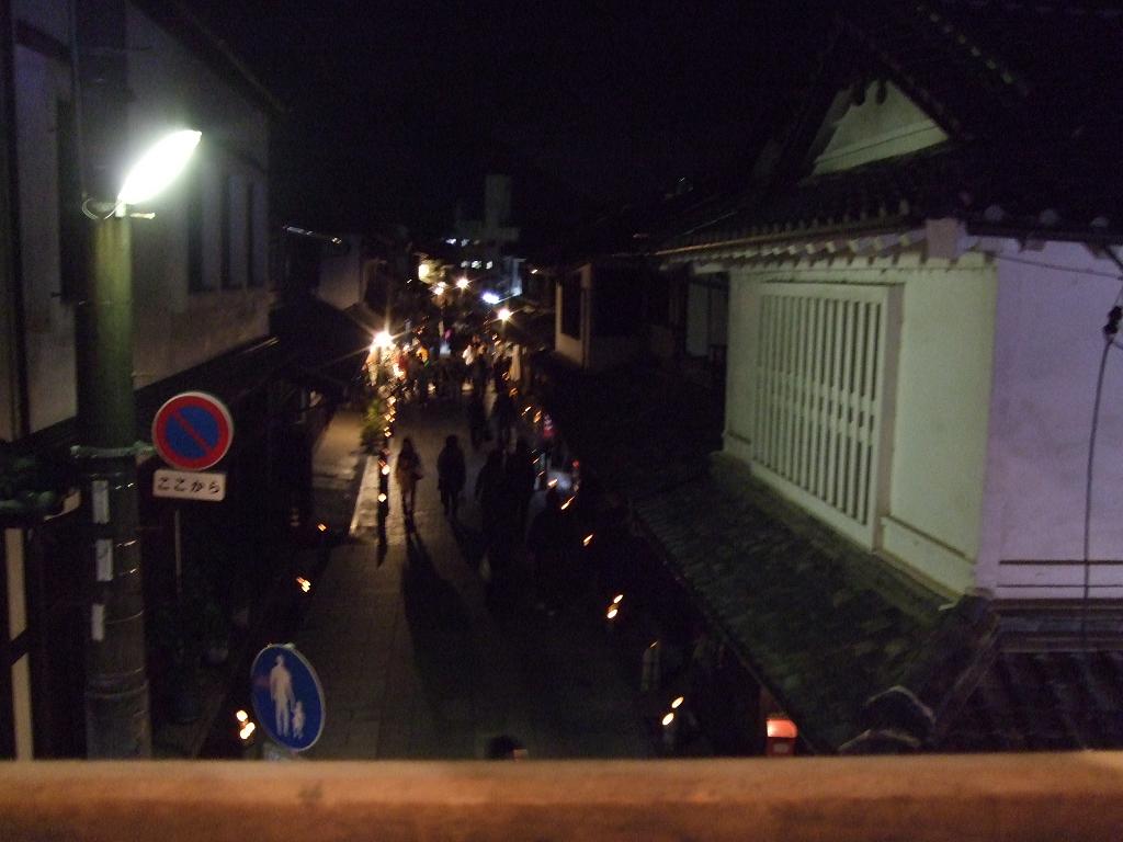 この週末、竹原では保存地区内の路沿いに竹の器にロウソクを入れた灯りを並べ、