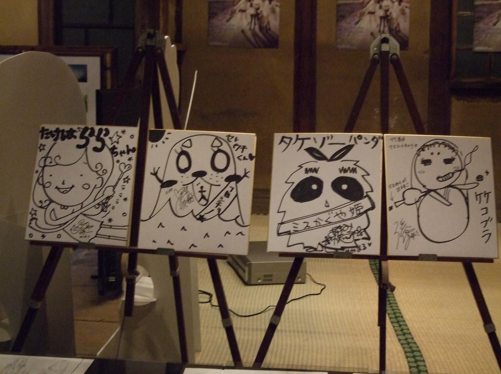 イベントでみなさんが書いた竹原マスコットキャラの色紙が展示に加わってました。