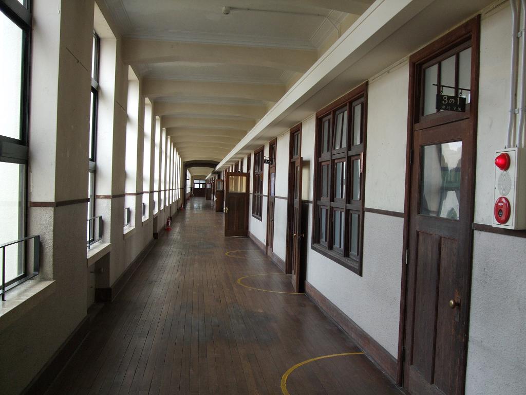 校舎内は木の廊下で結構いい感じの雰囲気。改修工事したとはいえ、さすが築70年。