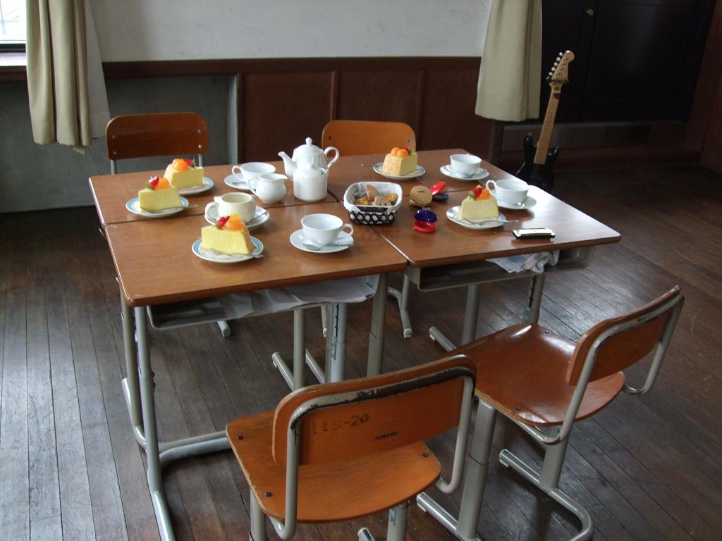 誰が置いたかご丁寧にケーキのおもちゃとティーセットがw