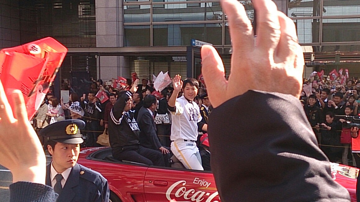 そして今日は優勝パレード。ちょうど連休で実家に帰省してたんで、
